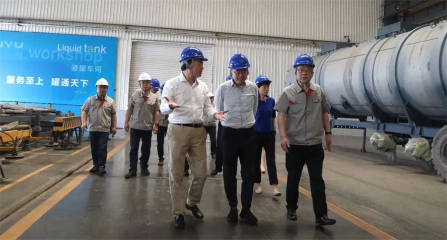 4月20日,中集车辆集团CEO兼总裁李贵平携高级副总裁王柱江、副总裁兼CTO李晓甫、副总裁兼董事会秘书毛弋、全国统一大市场发展委员会联席主席李志敏、CEO项目发展助理王佳慧一行莅临hth华体官方下载app参观指导工作。