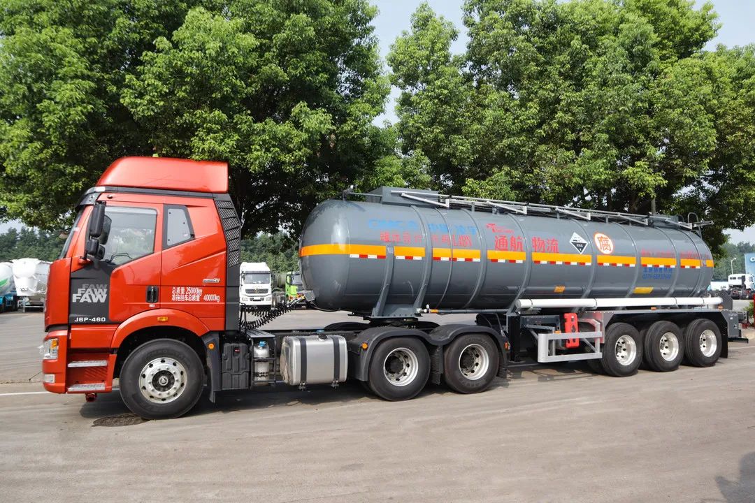 此次交付的腐蚀品液罐采用外加强设计,在保障整车强度的前提下,大大降低整车自重;筒体采用高强度耐腐蚀的不锈钢板材,坚实耐用;罐内防波板采用装配式结构,便于清洗及维修;配备安全阀及真空阀,安全有了保障;采用L4高设计代码,可装运多种介质,为客户带来更多经济效益!