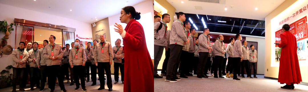 在工作人员的讲解下,大家认真聆听圆方集团“六课教育”、“四五”创新工作模式、“五新”非公党建工作方法,以及其他非公党建新体系、新机制,深刻领悟到“党组织就是靠山”、“党建也是生产力”。在二十大精神沉浸式主题展馆,大家走进长廊厅,通过欣赏舞蹈、唱红歌、诵读二十大精神、现场答题、重温入党誓词等互动环节,感受到一堂“网红薛书记”带来的生动党课。